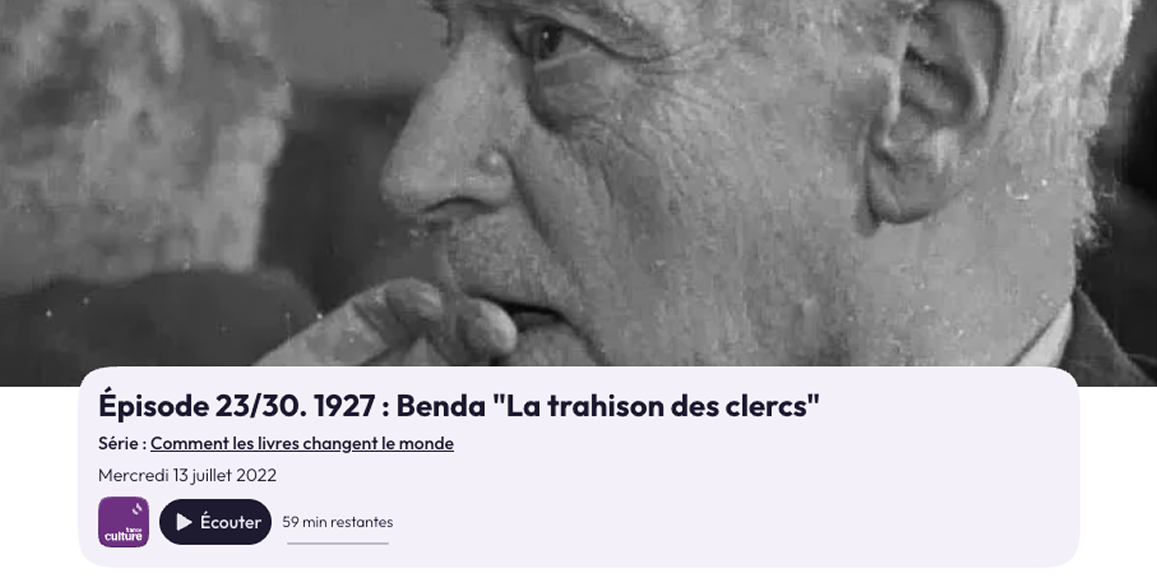 France Culture consacre un épisode de sa série Les œuvres qui ont changé le monde à La Trahison des clercs de Julien Benda (1927).